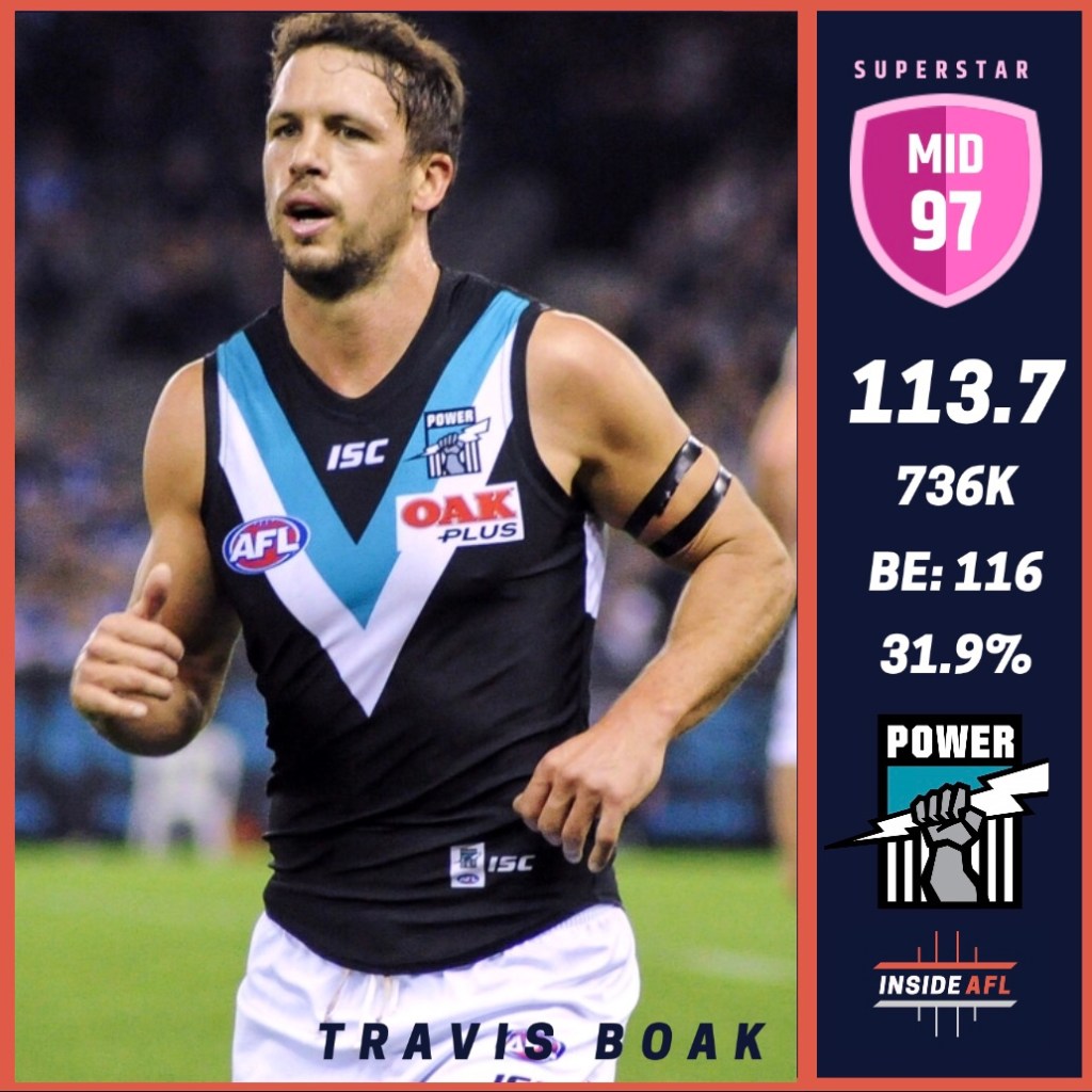 All four played some great footy, but Coniglio delivered the best individual performance of the year against the Suns. He just edged out Whitfield’s 190 from a few weeks back, finishing with 3 goals, 36 disposals (including 29 kicks), 13 marks, 8 tackles and 192 Fantasy points. Simply superb! Although I am a little disappointed as I traded him out a couple of weeks back. Well done if you had him!